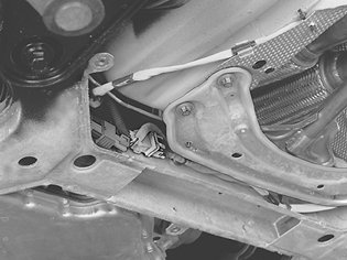 Note! Ensure that the heated oxygen sensor (HO2S) wiring is correctly routed over the brake pipe.