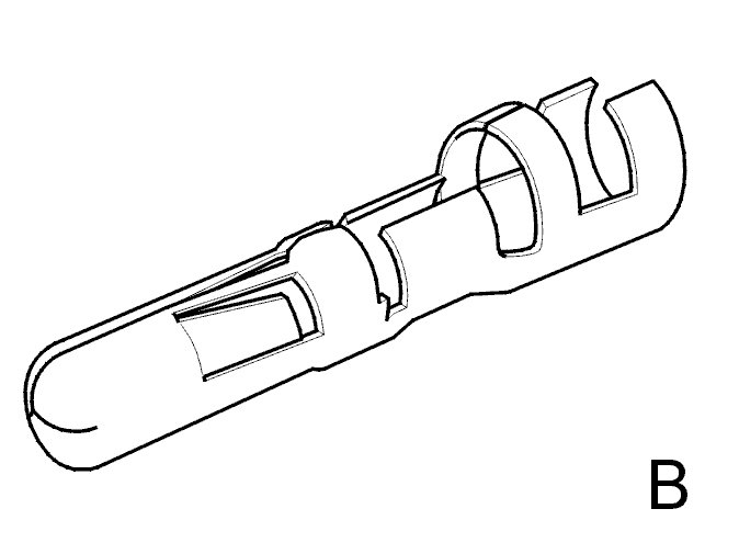 The cable terminals have no locking tabs. The primary locking is located in the cavities.