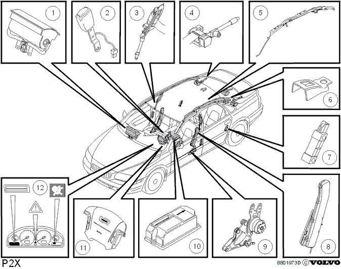 The sensors are located in the B and C posts, this is to obtain a fast/early reaction in case of a side collision.