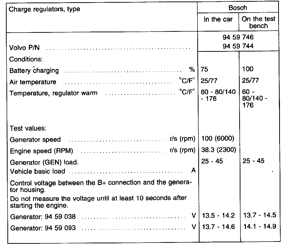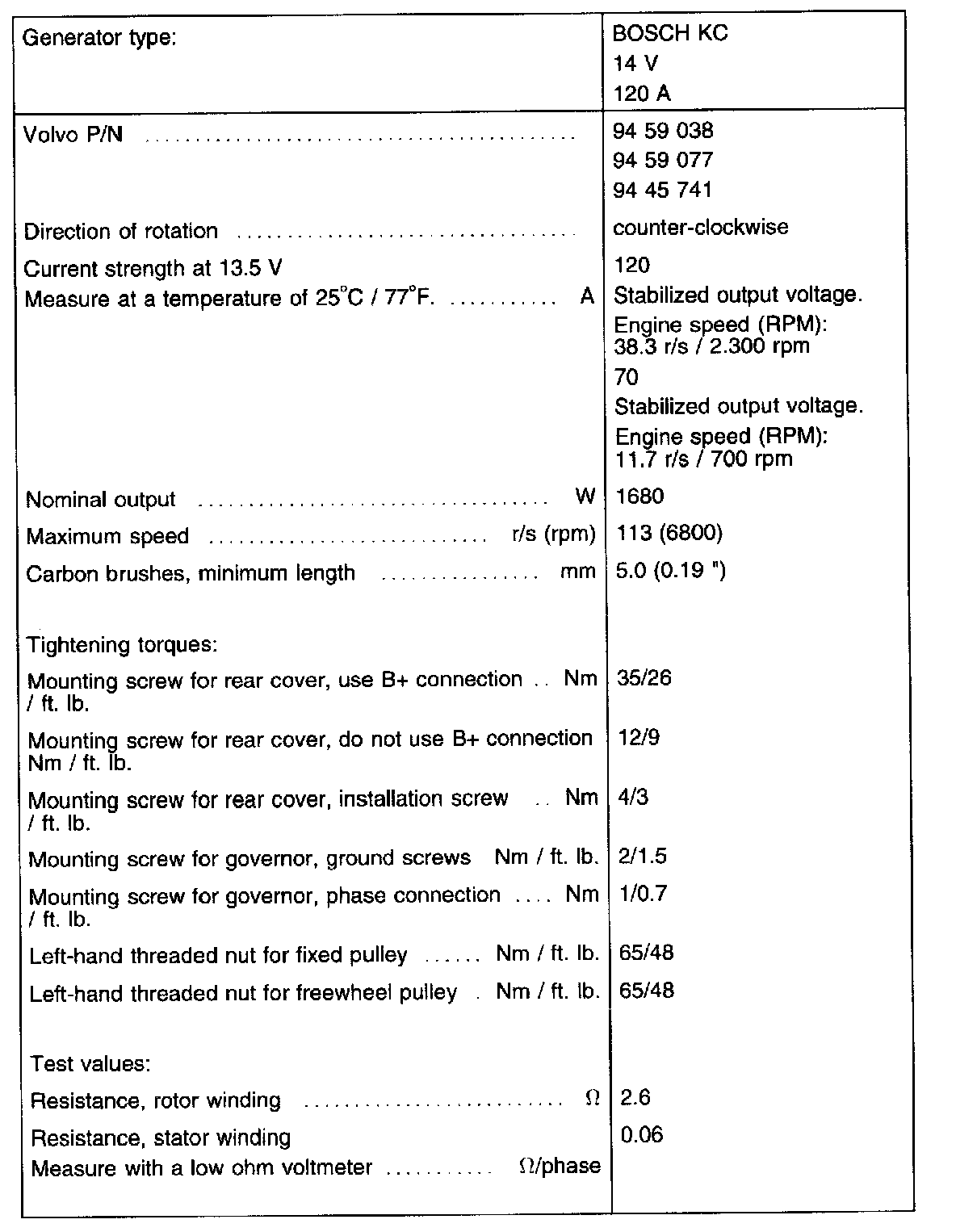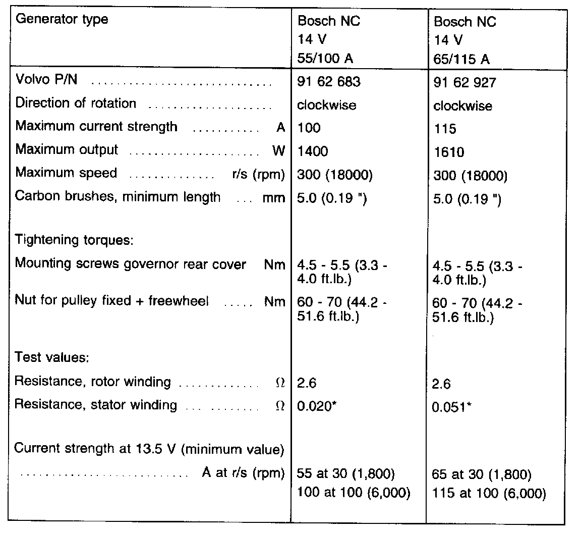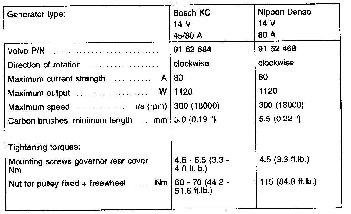 Generator/Charge RegulatorGenerators, Electrical and Mechanical Data: