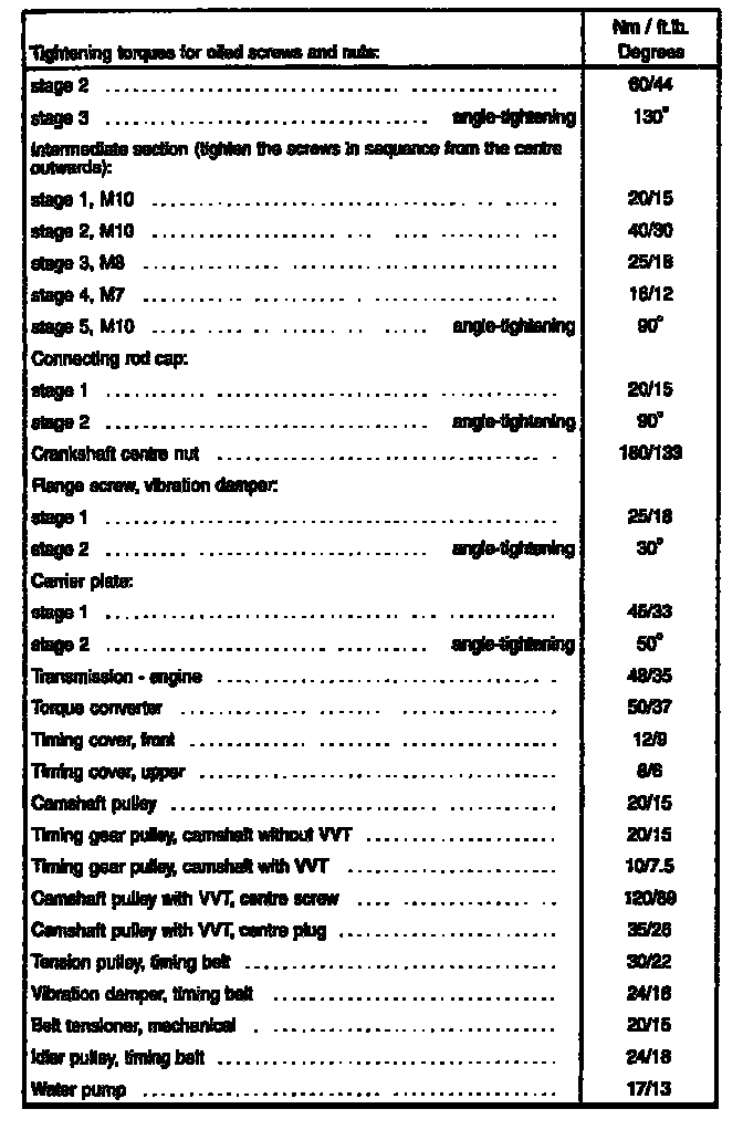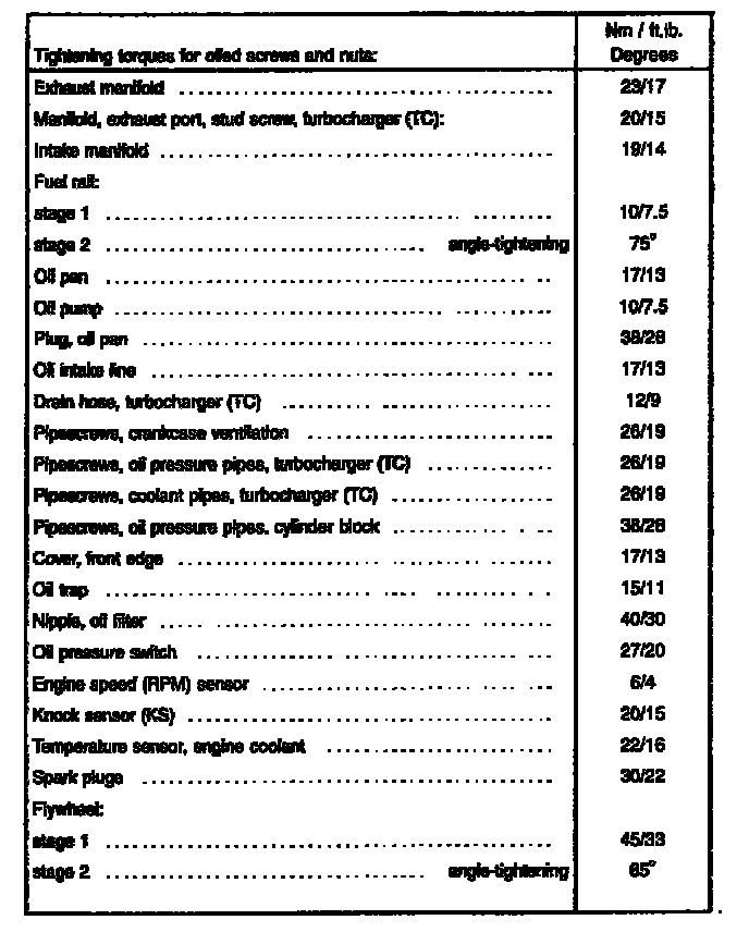 S70/V70 Engine Mechanical Torque: