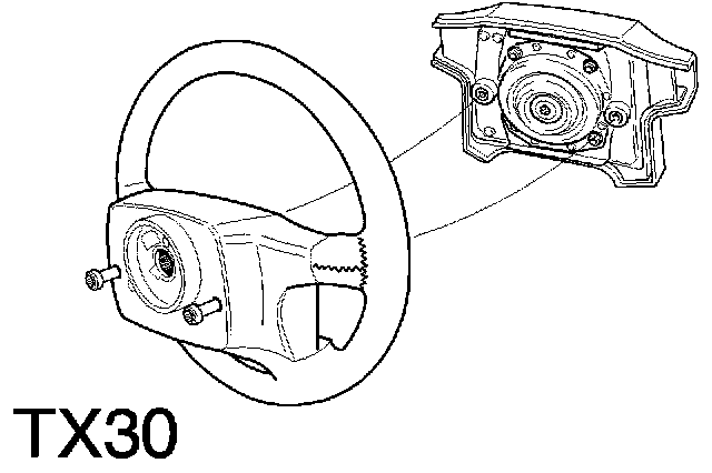 Slacken off both the two torx screws (TX30) on the reverse of the steering wheel. Turn the steering wheel 90° in both directions to access the screws.
