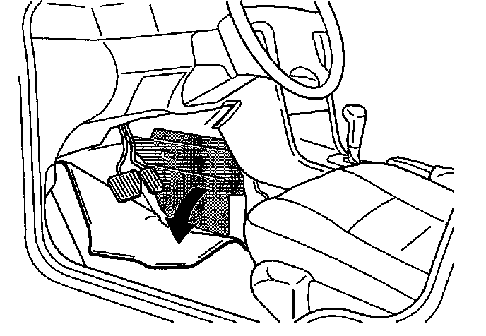 Position the steering column with the lower end at the lowest point of the floor just in front of the Accelerator Pedal (AP) beside the transmission tunnel.
