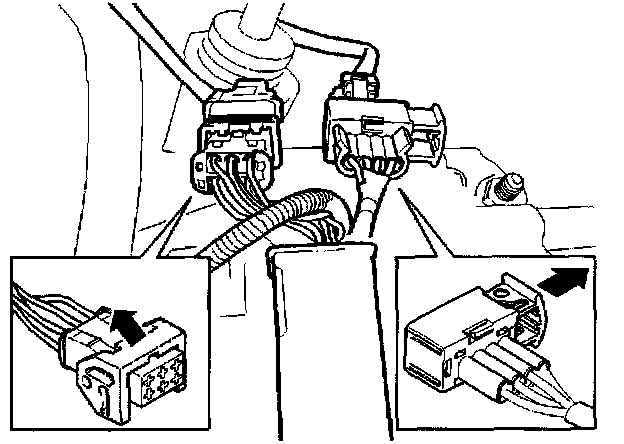 Open the catches and disconnect both front and rear connectors for the heated oxygen sensors (HO2S)