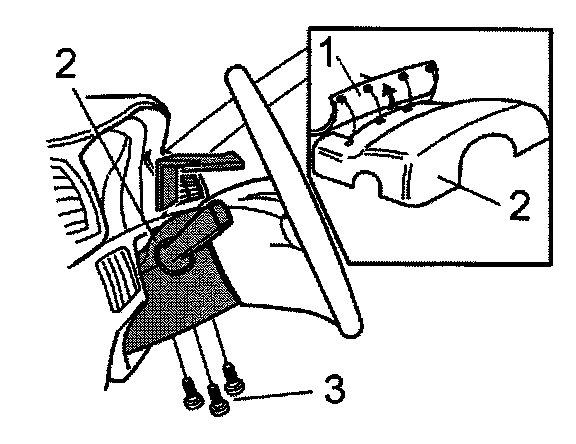 - upper steering wheel cover (2), by disconnecting it at the steering wheel, lifting it and pulling it outwards.