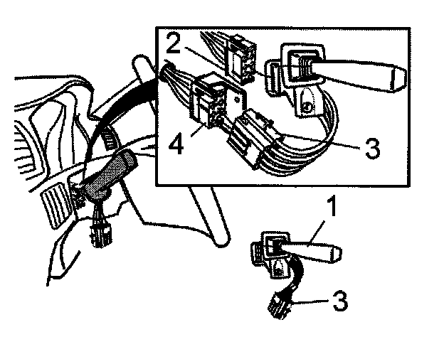 - the new cruise control/turn signal indicator switch Connect the 6-pin connector (3) from the lever to the connector (4), on the left-hand side of the steering column.