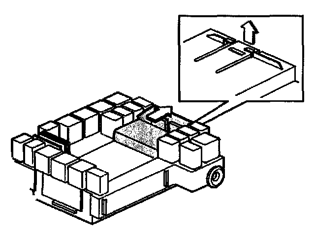 - Release the catch on the top as illustrated. Fold down the integrated relay/fusebox and lift up to release it.