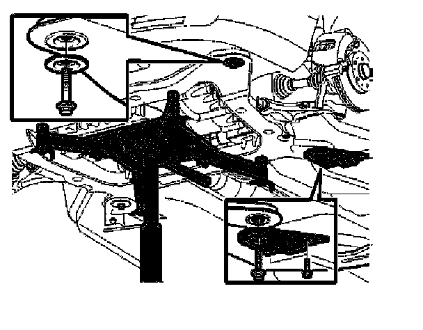 Remove the sub-frame screws together with accompanying brackets and washers.