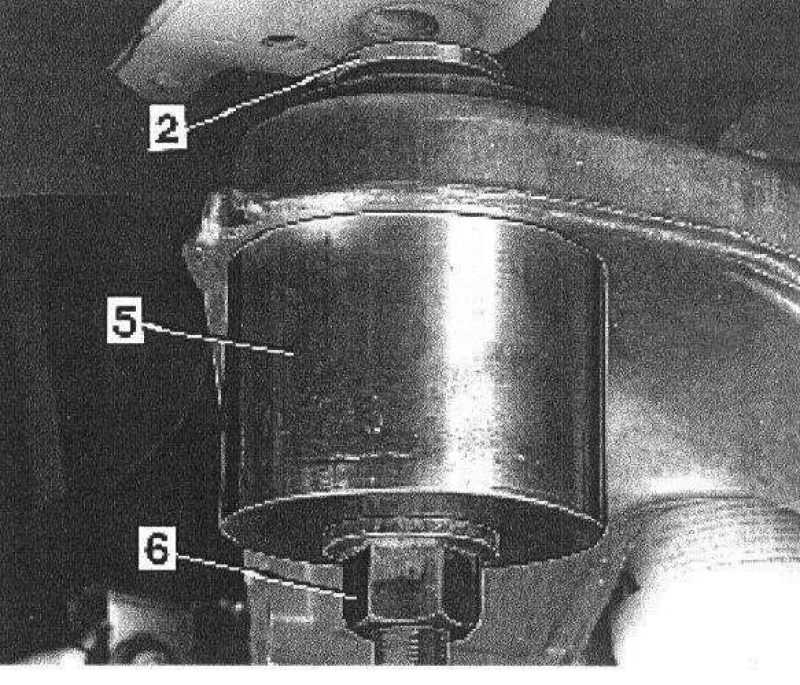 Install a new screw and locknut in the upper torque rod. Tighten to 35 Nm (25.8 ft. lbs.) and angle tighten 90°.