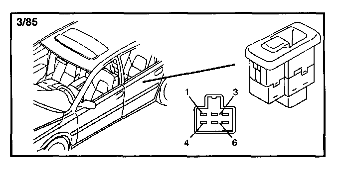 3/85 Power Window Switch, LH Rear Door: