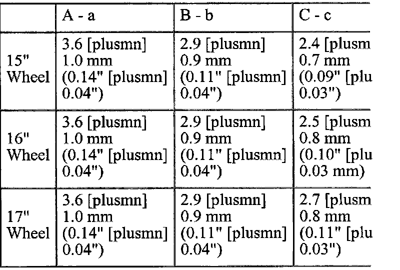 Measurements are taken at the height of the hub as an angular measurement or as the difference in mm between the front and rear of the wheel at points A, B. or C (tread of the tire, inner shoulder a flare of the rim, respectively).