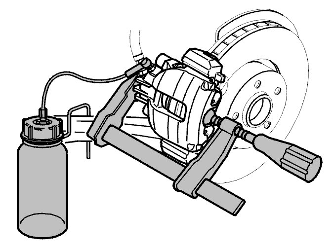 Connect the bleeding unit. Brake system, bleeding (using bleeding unit) Brake System, Bleeding (Using Bleeding Unit). Open the bleed nipple on the caliper. Wait until there is new oil in the plastic hose. Close the bleed nipple