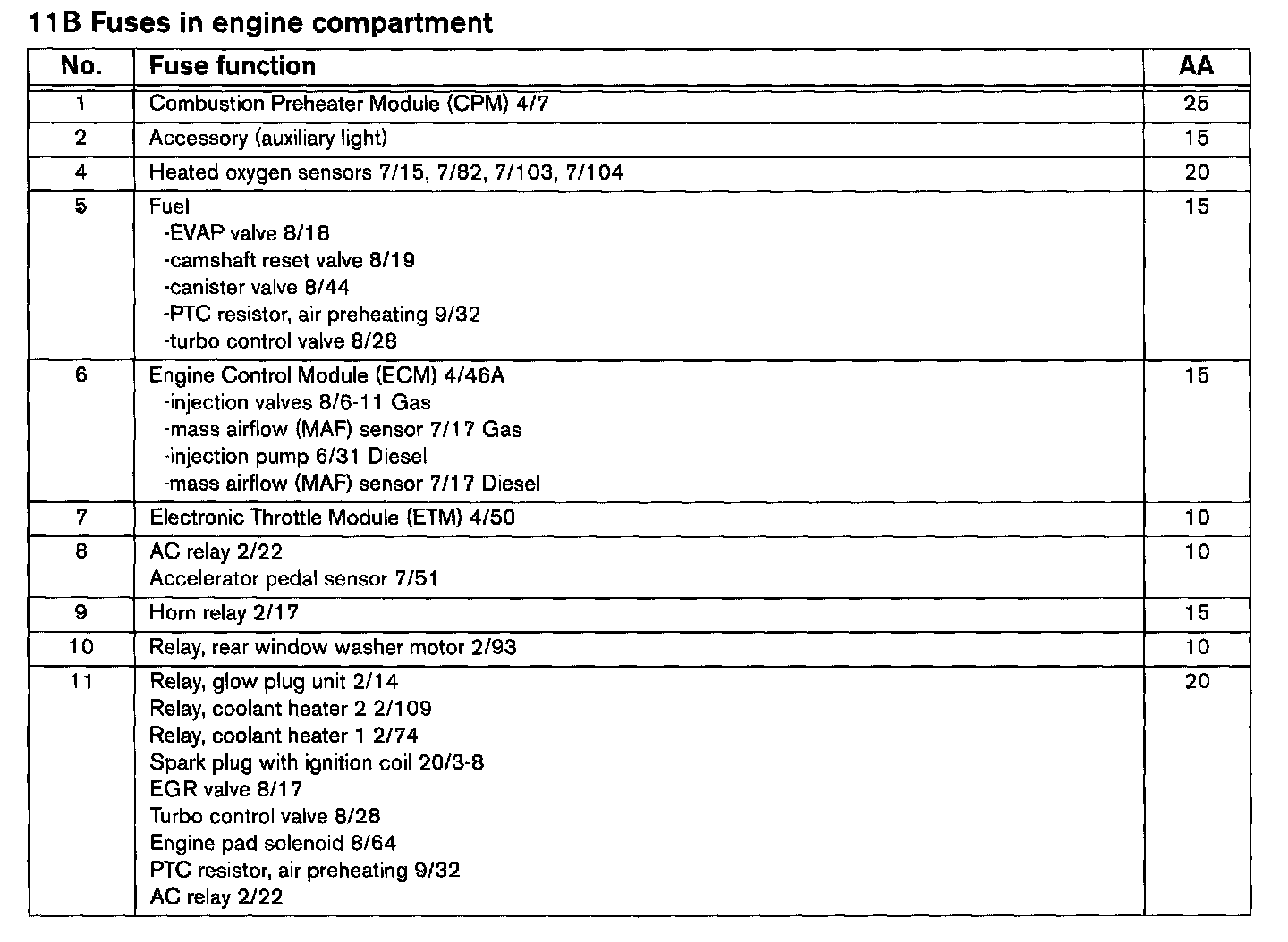 11E/1-7 Fuses By Battery: