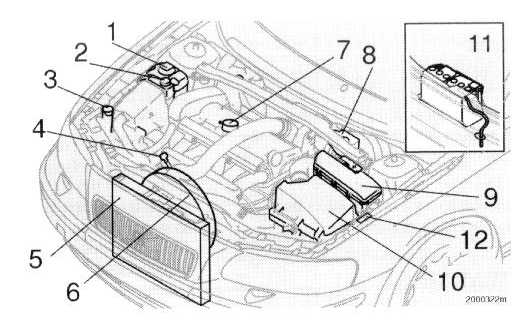 Engine compartment:1. Expansion tank - coolant