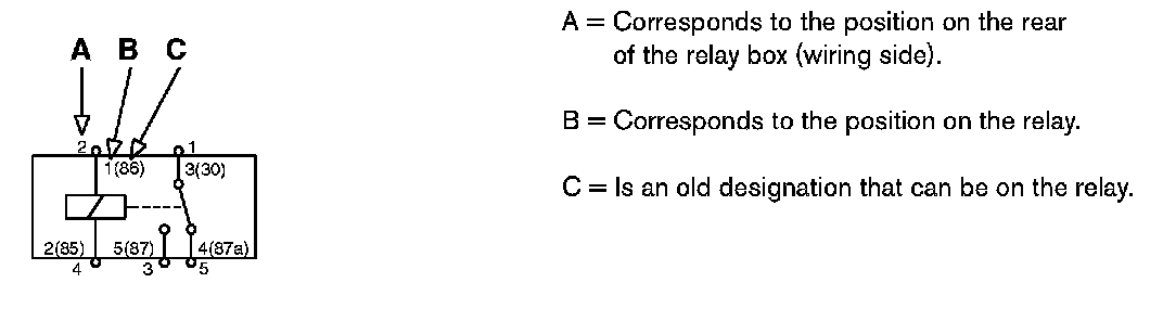 The diagram indicates two or three different designations for the relay's position. This is described below.