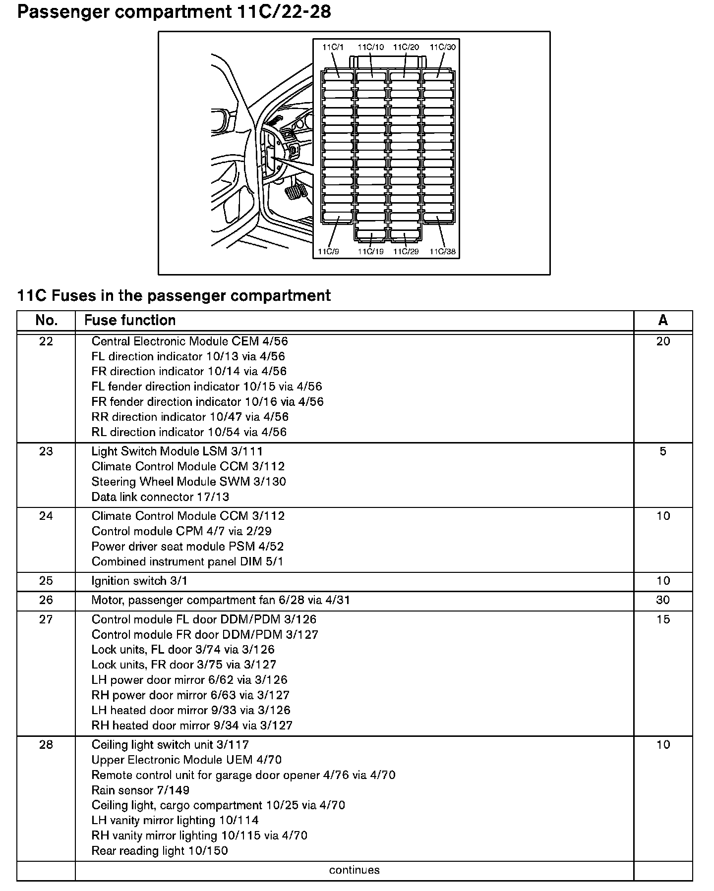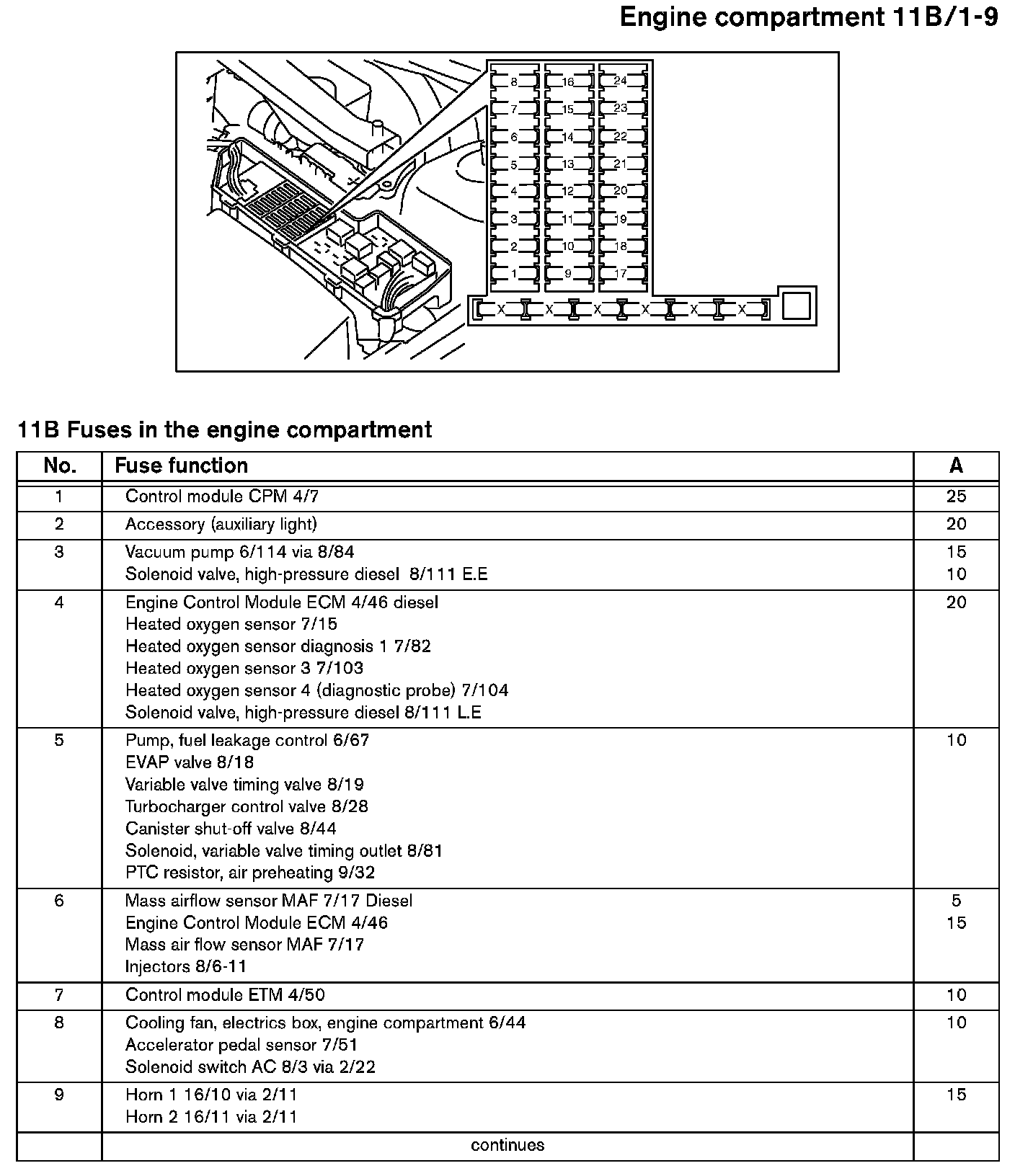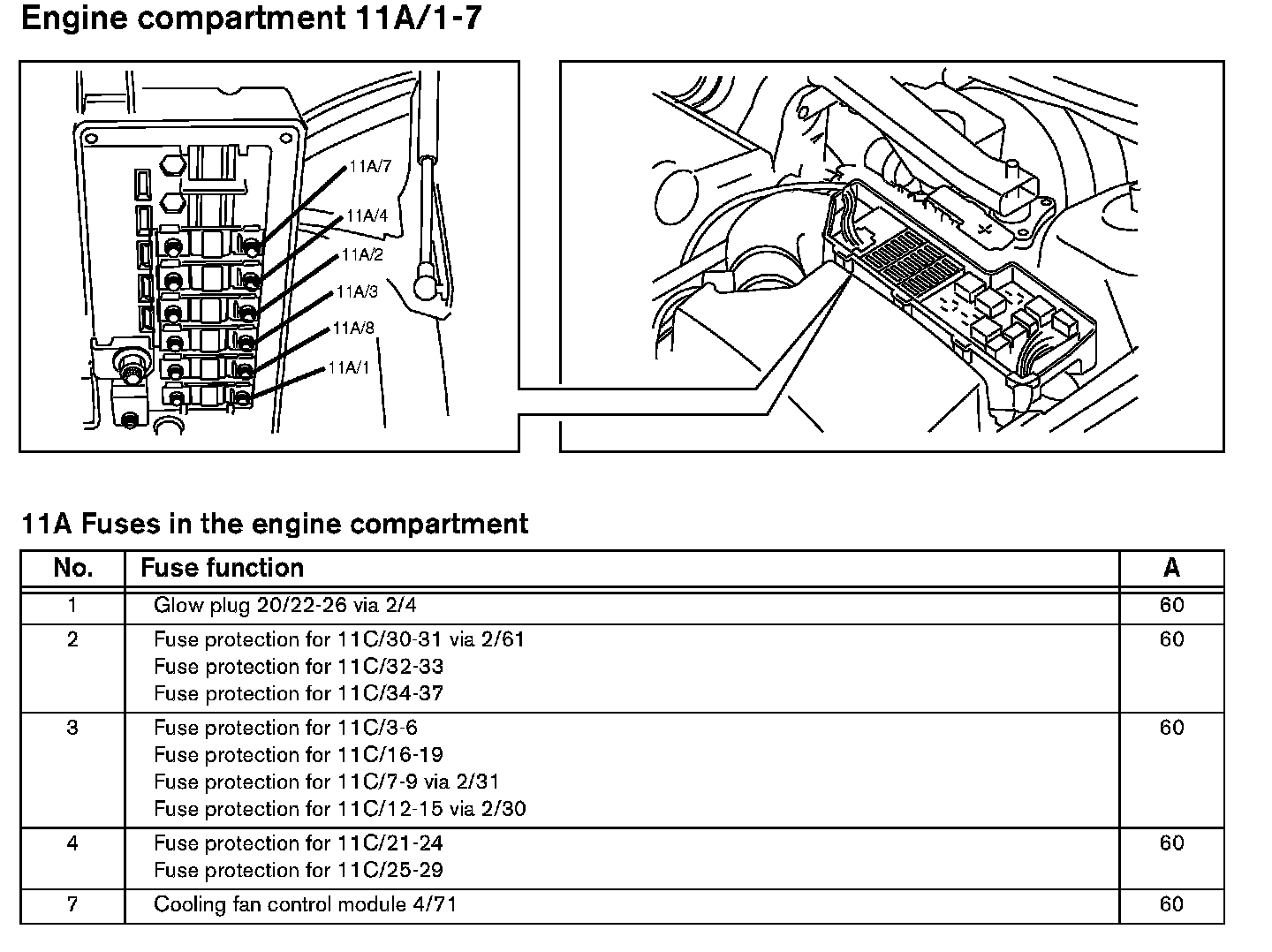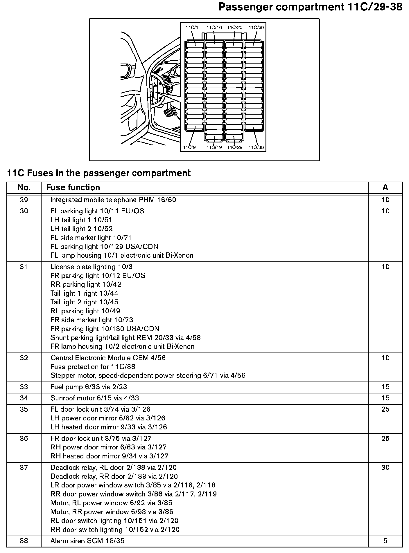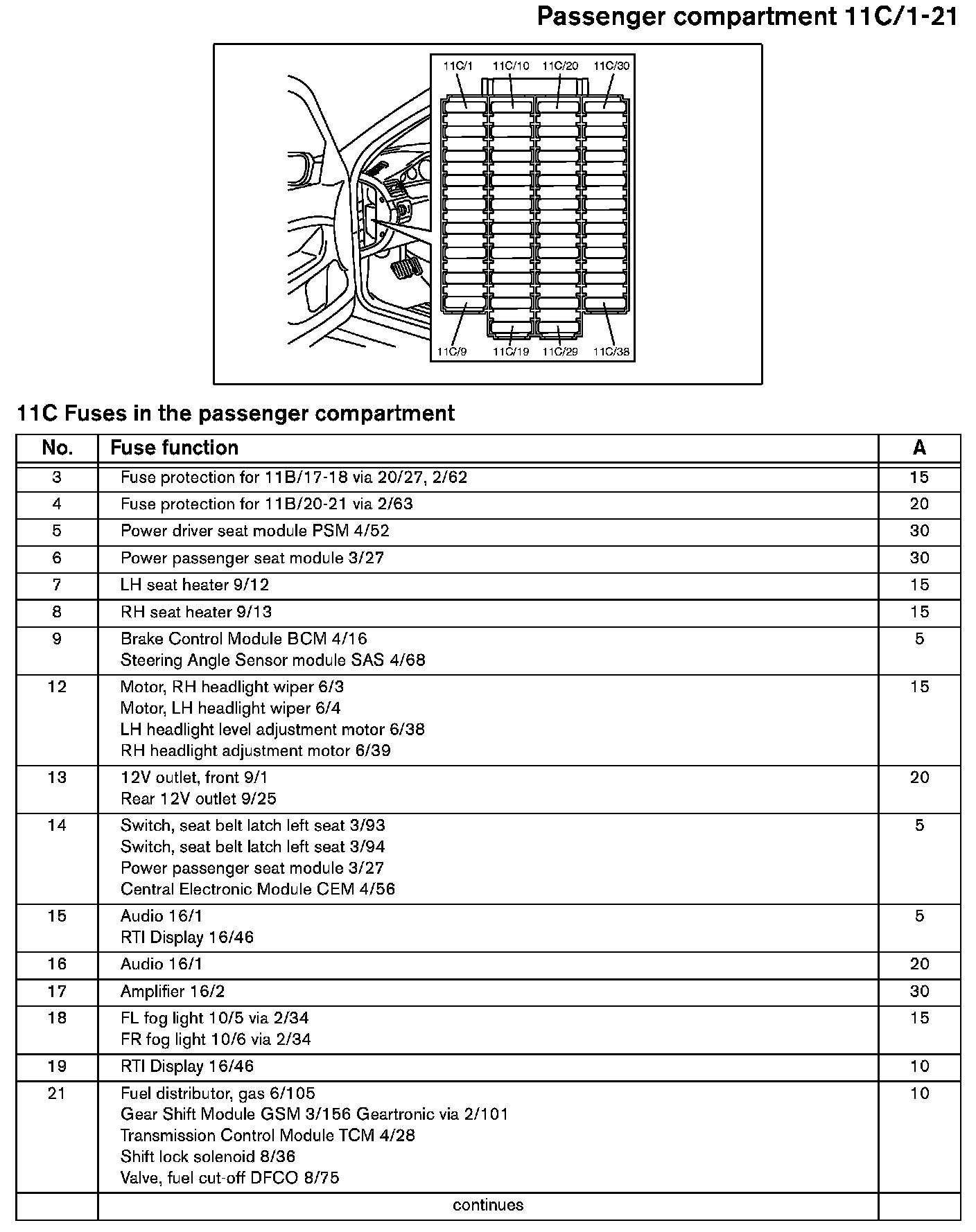 Fuses In Passenger Engine Compartment 11C/1-21: