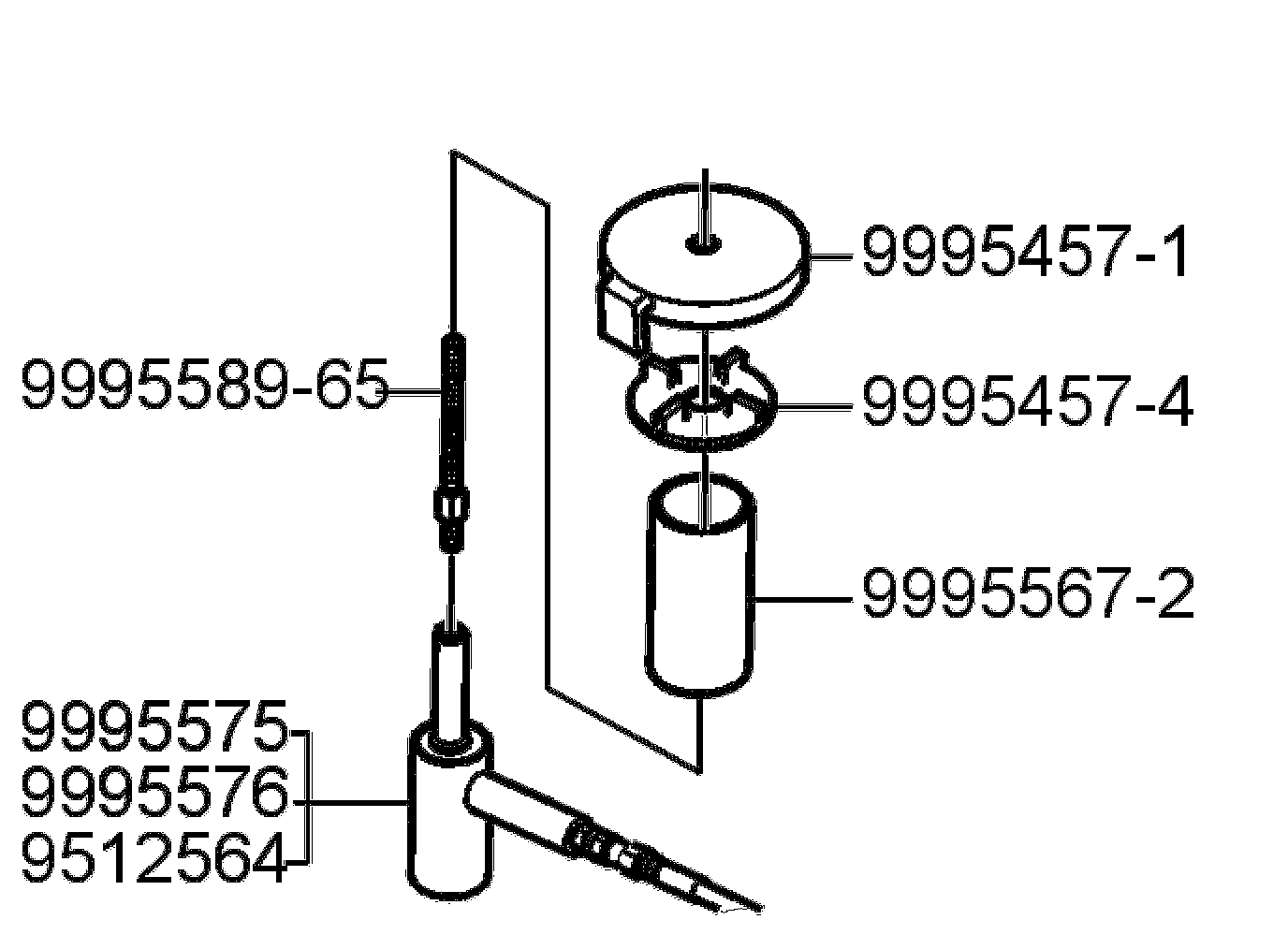 NOTE: It is arbitrary which of tools 999 5575, 999 5576 and 951 2564 is used.