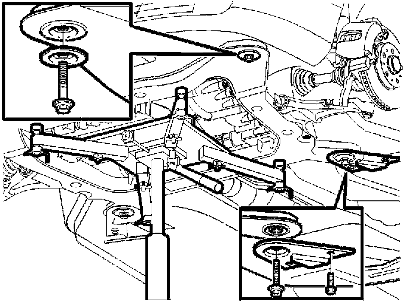 - Lift up the sub-frame slightly, approximately 50 mm from the car body.