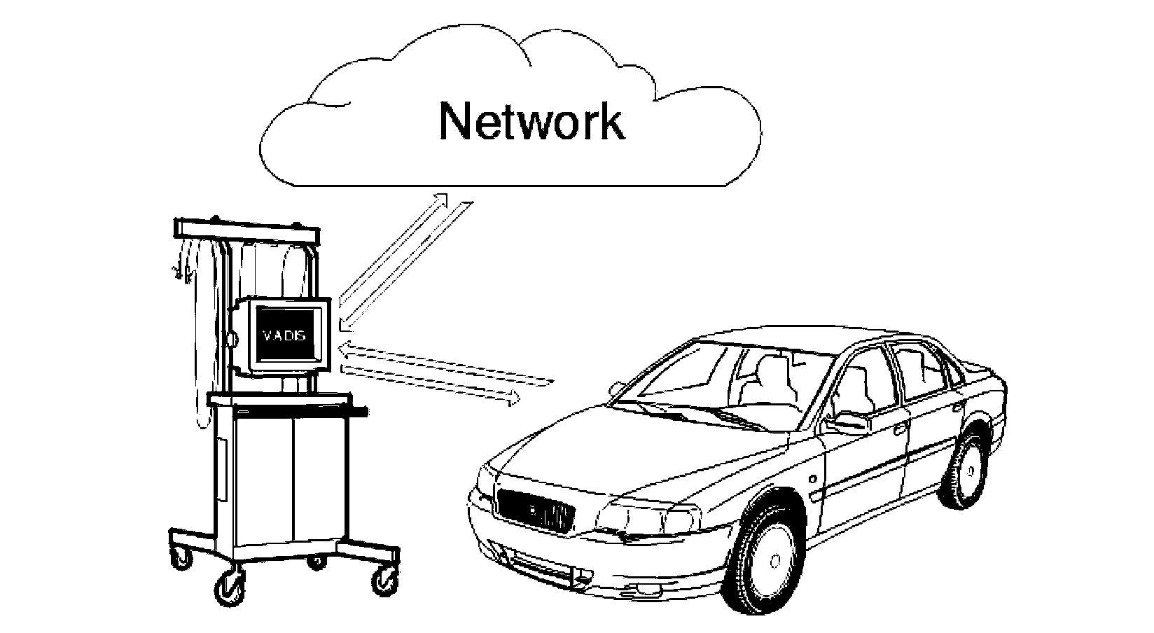 All the VADIS/VIDA stations where software downloading is possible are connected to the Volvo central database via a local area network (LAN) or a modem. There are two servers. One in North America and one in Europe. If communication cannot be established or if communication is interrupted with one server, a connection will automatically be made to the other server where all the information is available.