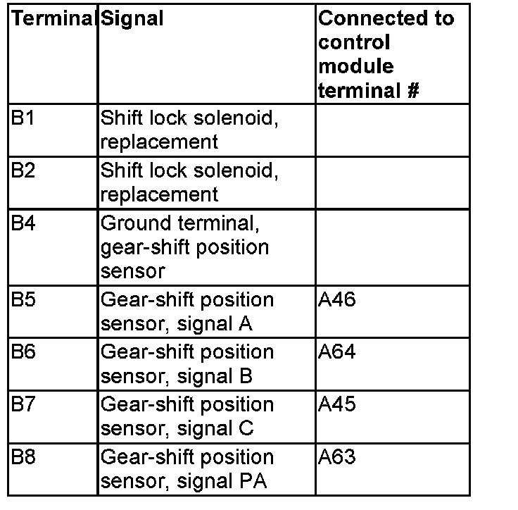 Connector B, transmission