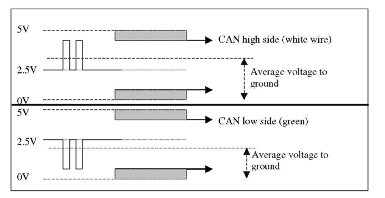 ^ Measure the voltage between the green and white wire in the relevant CANbus. In a normal case, key in position 2, the average voltage would be approximately 0.5V.