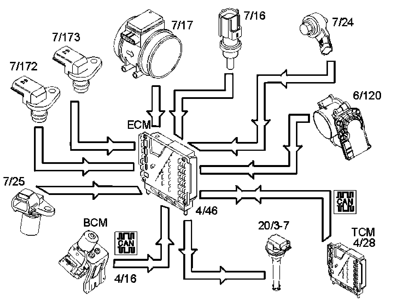 - engine coolant temperature (ECT) sensor (7/16)
