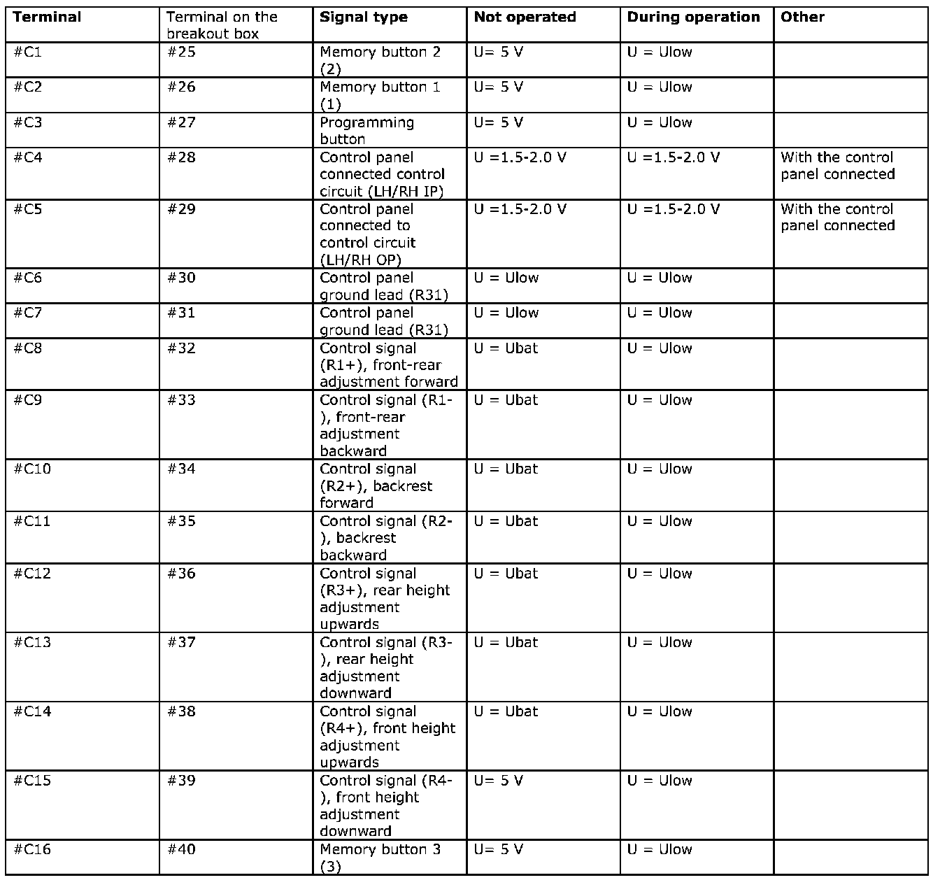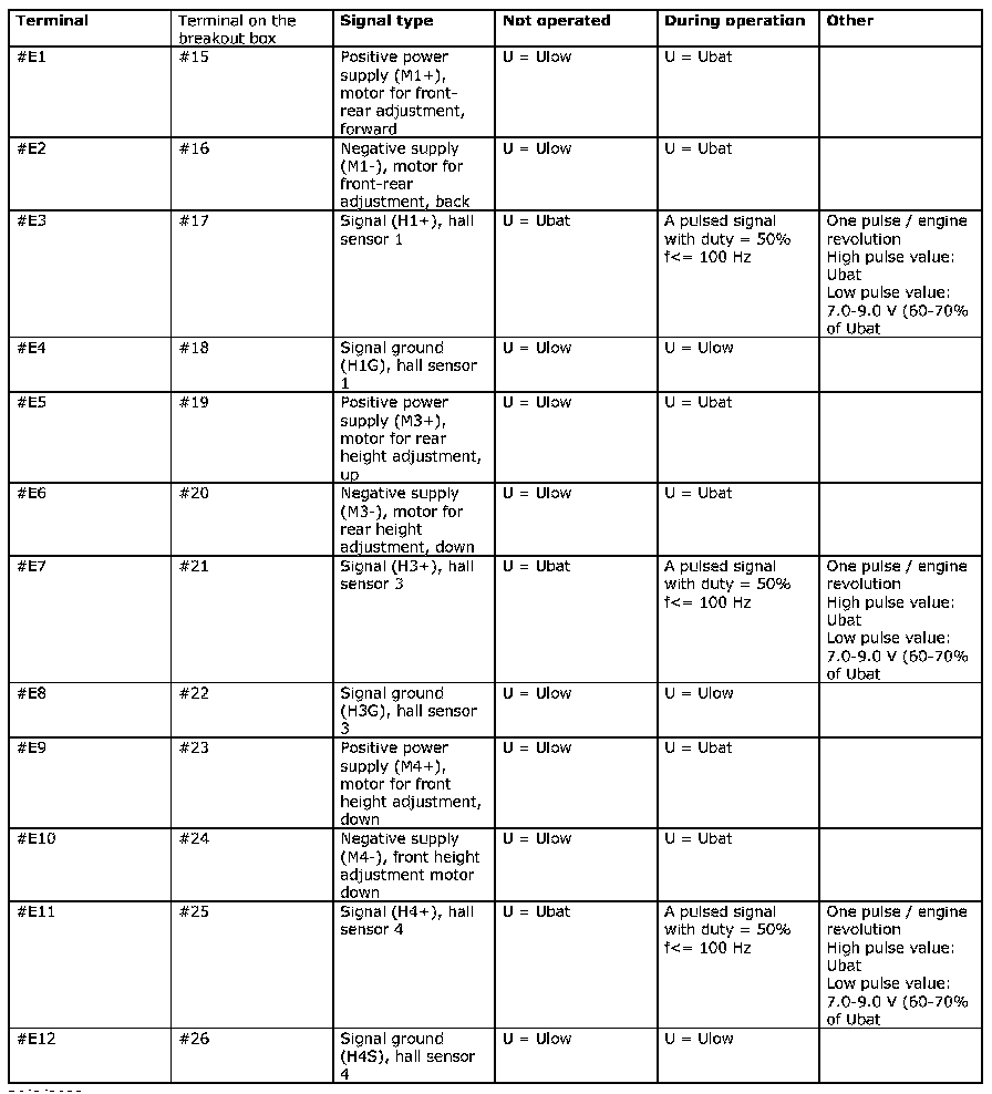 Signal Specification, Power Seat Module