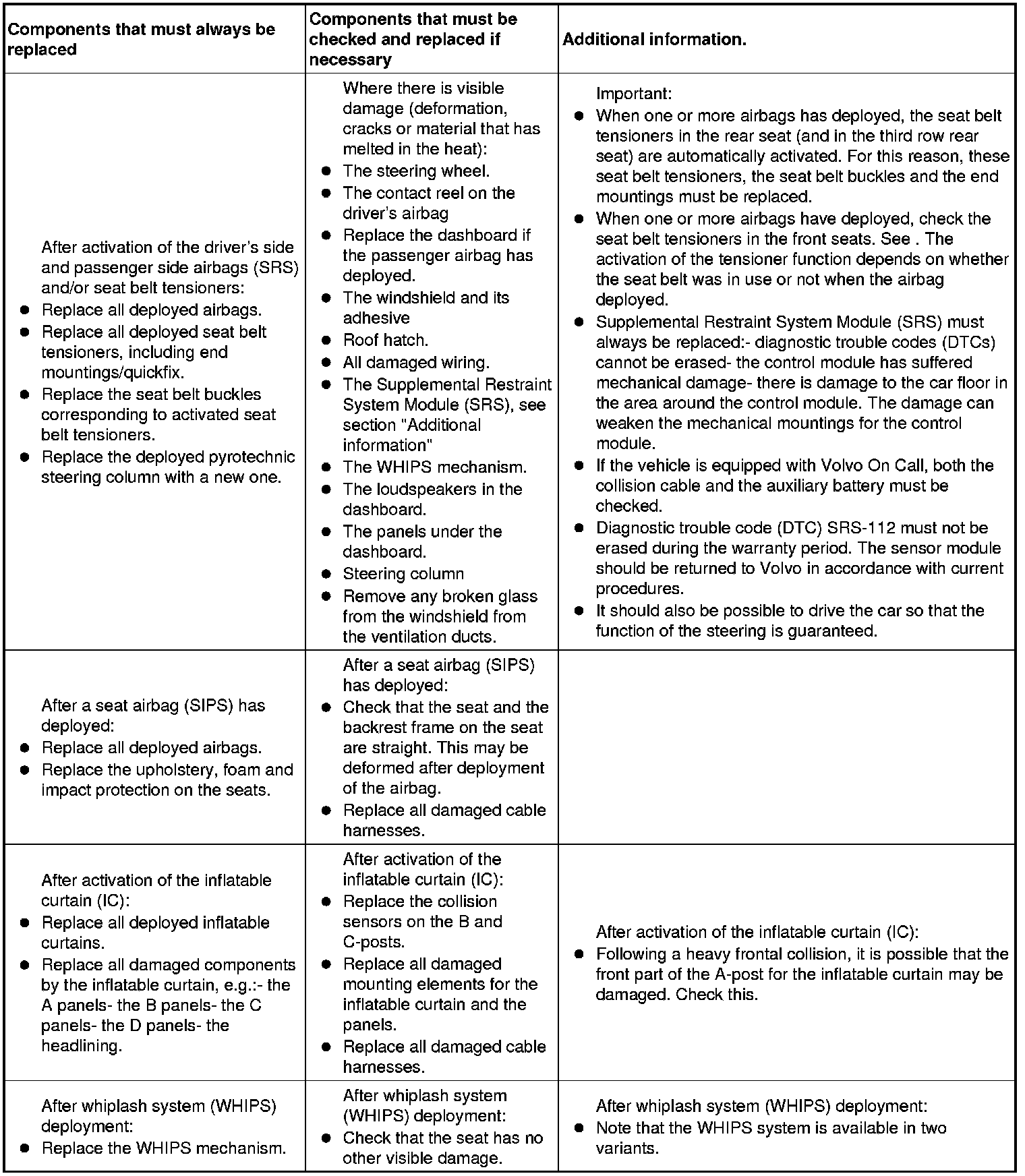 Handling Deployed Supplemental Restraint (SRS) Systems