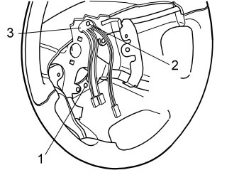 - Carefully reinstall the SRS connectors (2) on the steering wheel module as shown in illustration.
