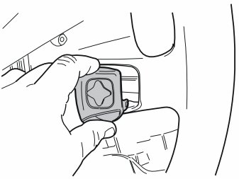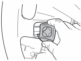 - Insert the keypad into the hole in the steering wheel with the hook facing forwards. Make sure it connects securely against the steering column cover.