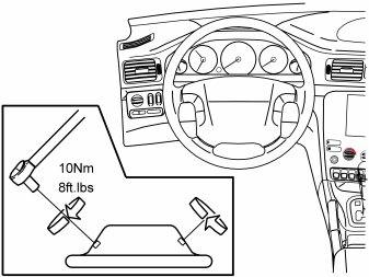 - Reinstall the screw in the steering wheel. Tighten to 40 Nm (30 lbf ft).