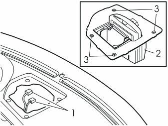 - Take the antenna amplifier (1) from the kit. Connect the cable (2) to the connector (3) for the antenna in the rear bumper by the right-hand tail lamp.