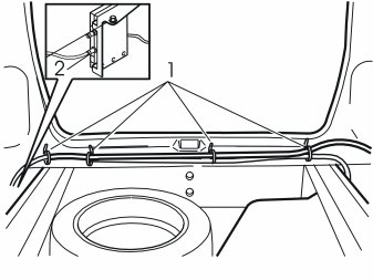 - Clamp the cable under the tailgate sill trim panel. Use the 4 x tie straps (1) from the kit.