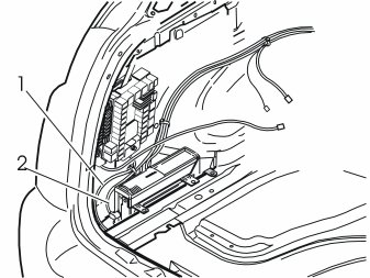 - Connect the wiring for the DVD reader (1) to the display (2).