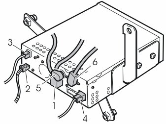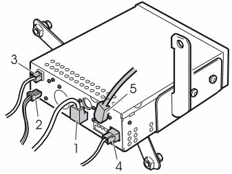 - Connect the blue connector (2) on the new power supply cable for the CD changer.