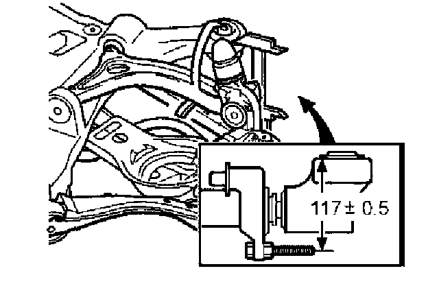 - Install a M12x70 mm screw and nut in the hole for the anti-roll bar on the control arm, to assist when measuring