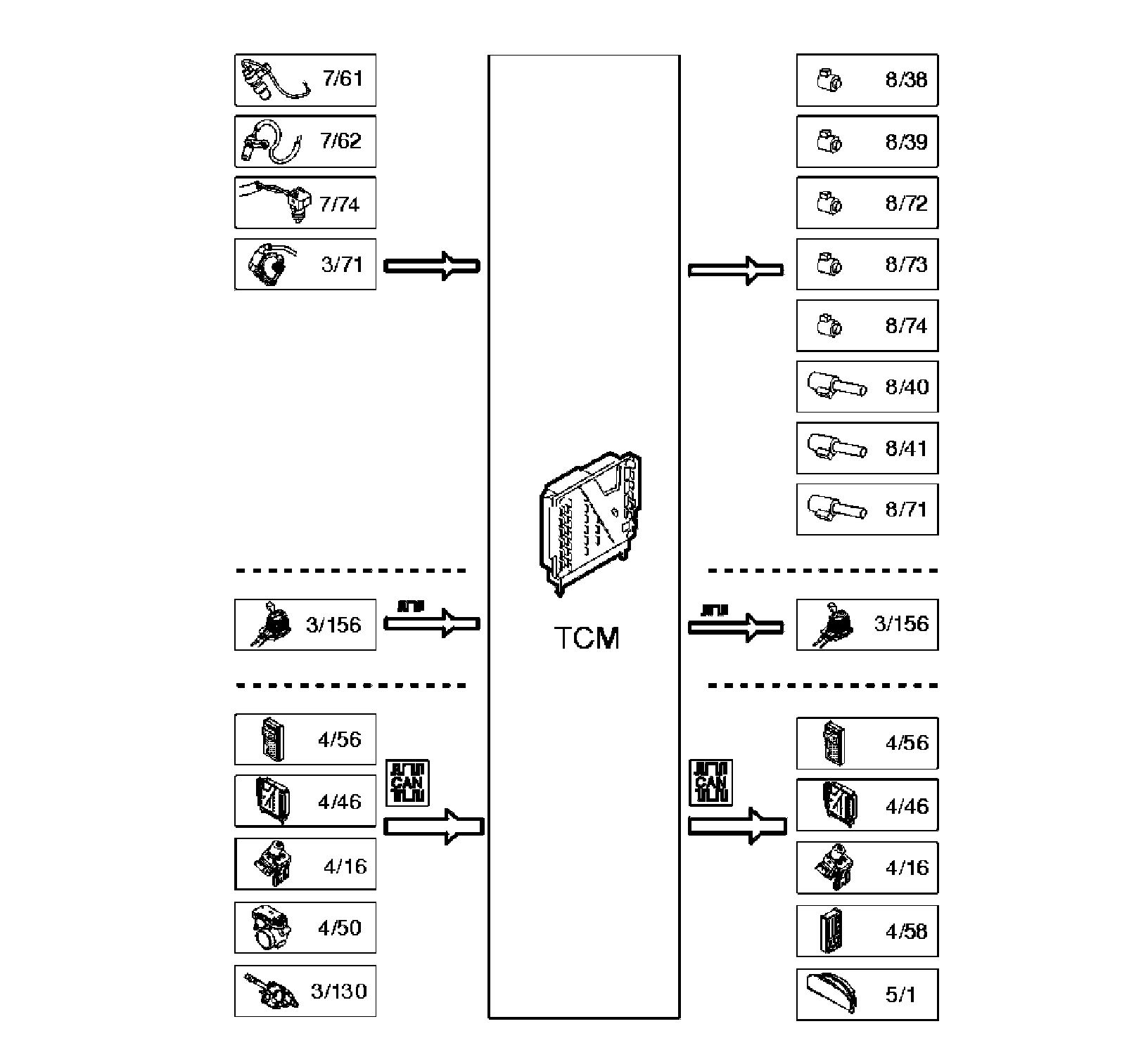 - Transmission Control Module (TCM)-Controls activation and deactivation of the solenoids by processing the signals from components such as the transmission input and output speed sensors and the temperature sensor.