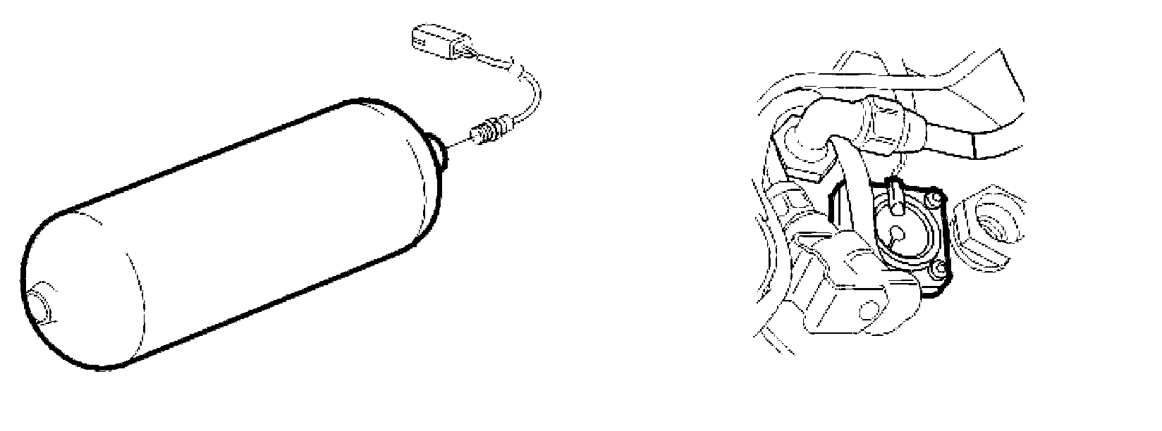 A sensor, on the right-hand side of the tank, is used to measure the fuel level in the LPG tank. The sensor is directly connected to the rear electronic module (REM). The signals from the sensor are compared with a table stored in the rear electronic module (REM). Data about the remaining volume of fuel is transmitted via the Control area network (CAN) to the driver information module (DIM).