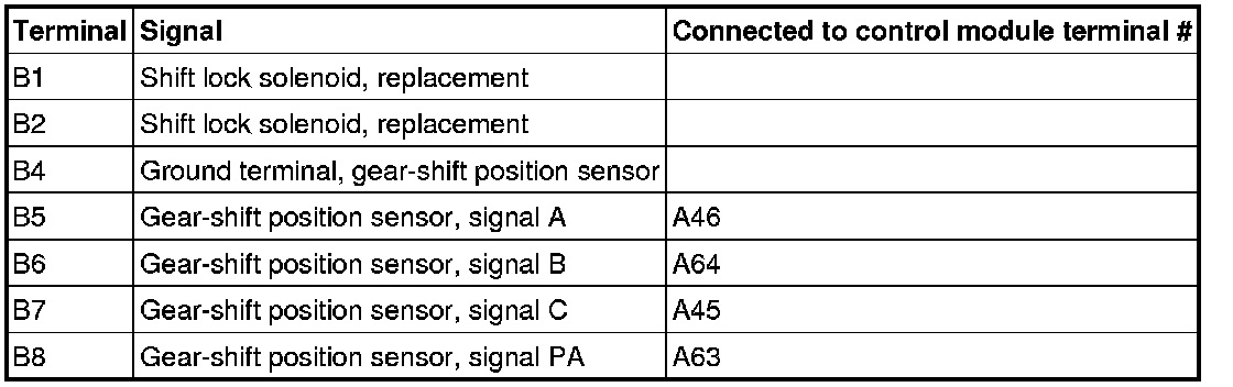 Connector B, transmission