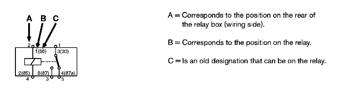 The diagram indicates two or three different designations for the relay's position. This is described below.