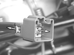 Move the pin backwards. Use special tool 951 2638 Terminal removal tool 951 2638 Terminal Removal Tool.