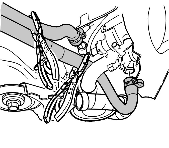 Tighten the hose clamps for both the engine coolant hoses.