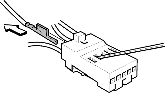 Insert the terminal removal tool end between the cable terminal locking tabs and extract the cable terminal.