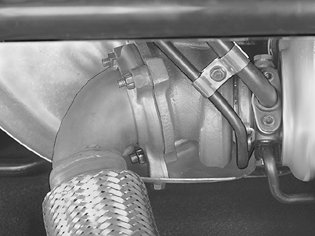 - the lower screw in the heat deflector plate above the turbocharger (TC)