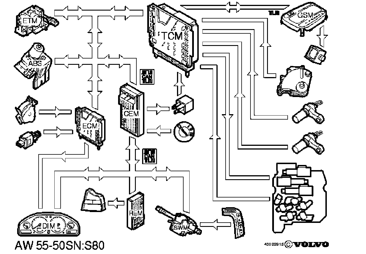 AW55-50 (and AW50AWD) is a 5-speed electronically controlled automatic transmission with a lock-up function for the three highest gears. The transmission control module (TCM) adapts the gear changes to ensure that the correct gear is selected for the driving mode, engine load, driver requirements, speed etc. This gives good fuel economy combined with increased comfort by ensuring smoother gear changes and lower noise levels.