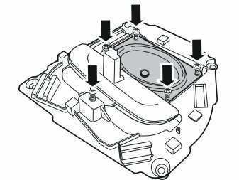 - Take the washer for mounting the screen's holder to the bracket and fit it on the underside of the holder.
