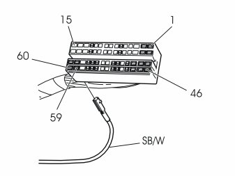 - Connect the black/white (SB/W) solid core wire to position 59 in the connector. The positions are marked with small figures on end faces of the connector.