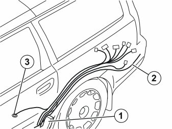 - Route the three cables under the carpet, along the left-hand side of the car, to the rear door.