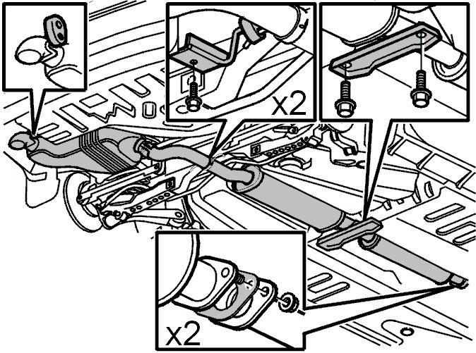 - the mountings for the exhaust system.