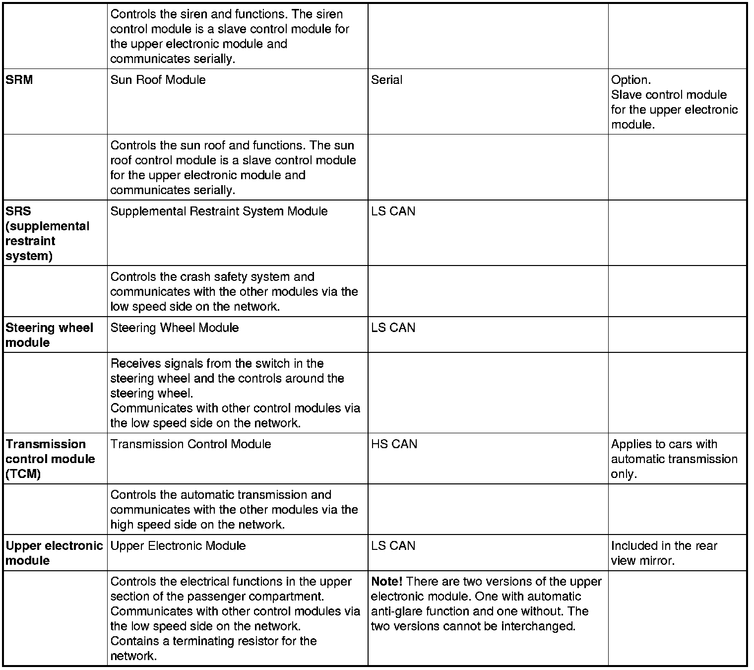 The number of control modules in the CAN varies depending on the level of equipment, the car model and the structure week. The description applies to the structure week 199815-200149. The structure week and the manufacture week are not necessarily the same week. The week of manufacture is the week in which the car was manufactured in the factory. The content of the car is guided by the structure week A structure week can extend over many manufacture weeks. The structure week is specified in the format YYYYWW.